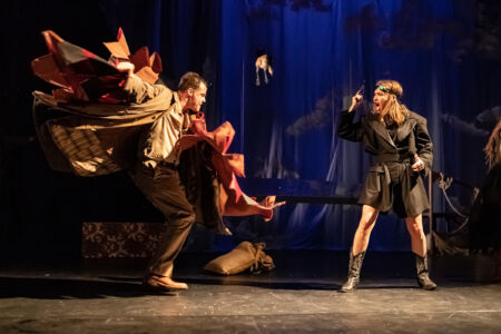 Cette pièce à la fois baroque et contemporaine écrite par Thierry Simon, offre un terrain d’exploration théâtrale fabuleux, où la magie poétique, électrique, des interprètes, venu.e.s du théâtre, du cirque ou de la danse, fait vibrer et résonner, ce poème né en temps de crise, la nôtre, toujours la nôtre.